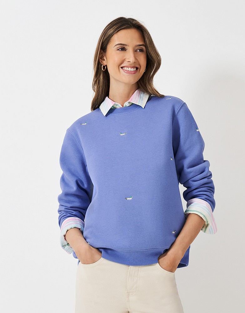 Duck Embroidered Crew Neck Sweatshirt in Blue
