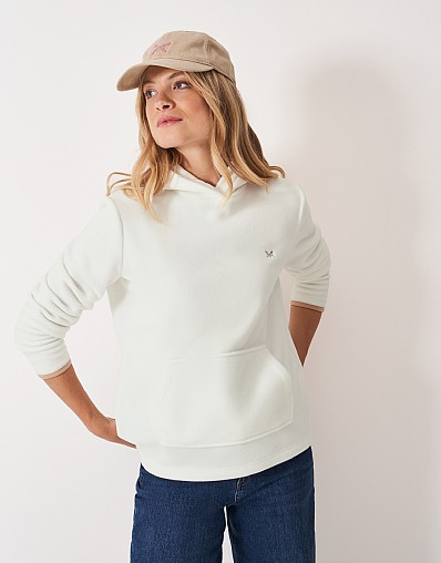A micro fleece hoody in ivory. This toasty layer has been finished with kangaroo pockets, a hood and our signature crossed oars embroidered on the front. Wear it with everything. Fleece has never been more stylish - or cosy.
