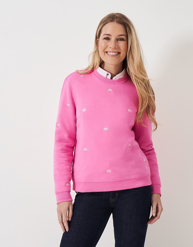 Shell Embroidered Crew Neck Sweatshirt in Pink