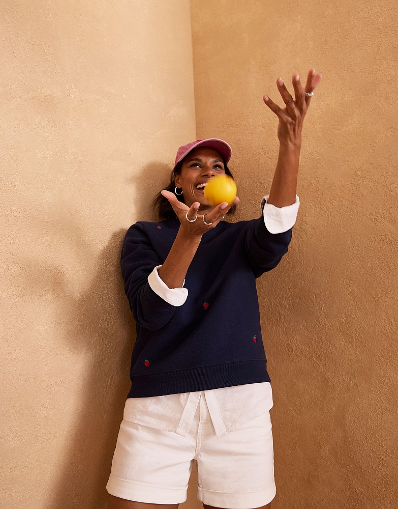 Strawberry Embroidered Crew Neck Sweatshirt in Navy