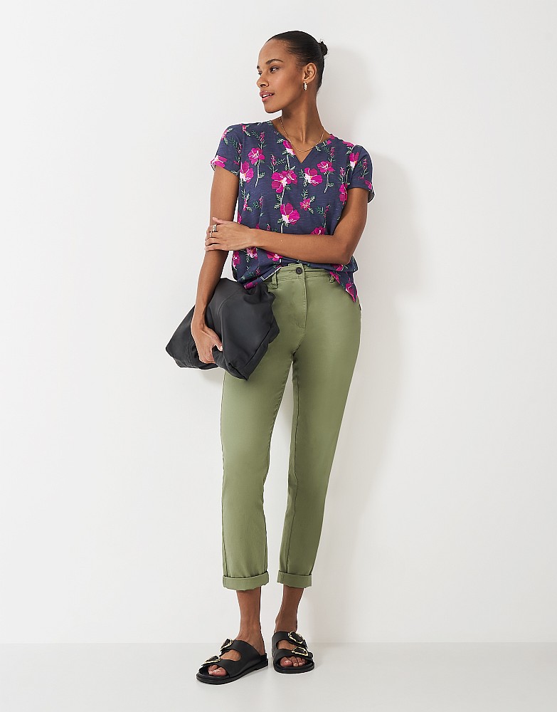 Cotton Slub Notch Neck T-Shirt in Pink Floral