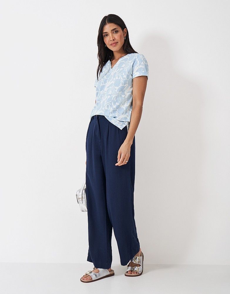 Cotton Slub Notch Neck T-Shirt in Blue Floral