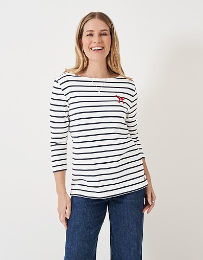 Bow Embroidered Ultimate Breton in Navy and White Stripes