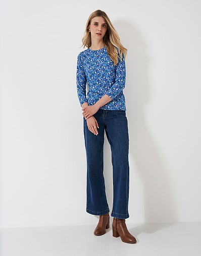 3/4 Sleeve Floral Print Viscose Top in Blue Ditsy