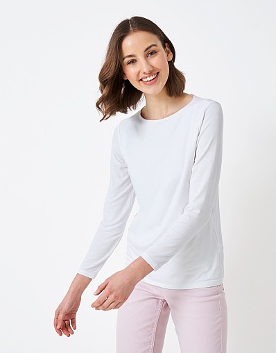 White Boat Neck Long Sleeve Top - Jemma
