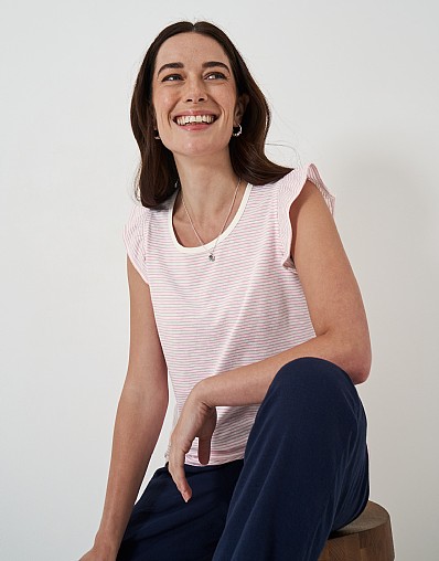 Leah Pretty Sleeve Scoop Neck Striped Top