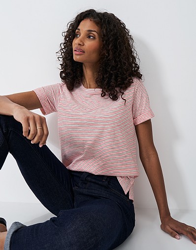 Stripe Crew Neck Slub T-Shirt in Red and White