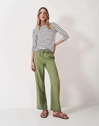 Double Cloth Wide Leg Trouser in Green