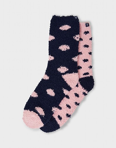 2-Pack Fluffy Socks in Navy & Pink Dot