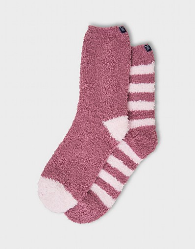 2-Pack Fluffy Socks in Rose & Pink Stripe