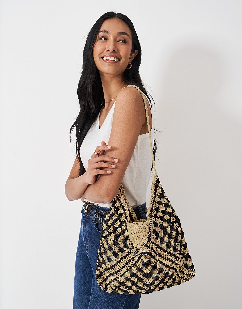 Straw Shoulder Bag in Black