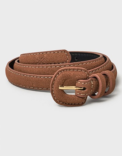 Leather Contrast Stitch Waist Belt in Tan