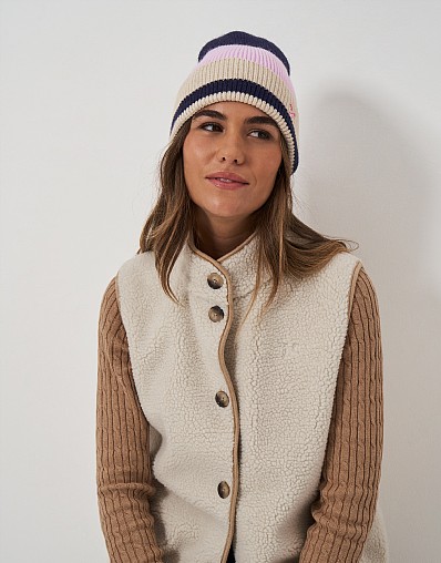 Colourblock Beanie in Navy Pink Stripe