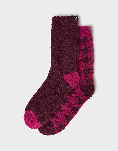 2 Pack Fluffy Socks in Cherry & Burgundy Print