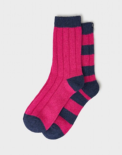 2-Pack Wool-Mix Boot Socks in Blue & Pink Stripe