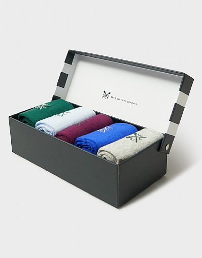 Put your best foot forward with this five-pack of socks, presented in our signature box. In blue, green, port and grey marl, these will make your morning routine a little more colourful. Their comfortable bamboo fabric helps keep feet fresh, too. Your sock drawer will thank you.