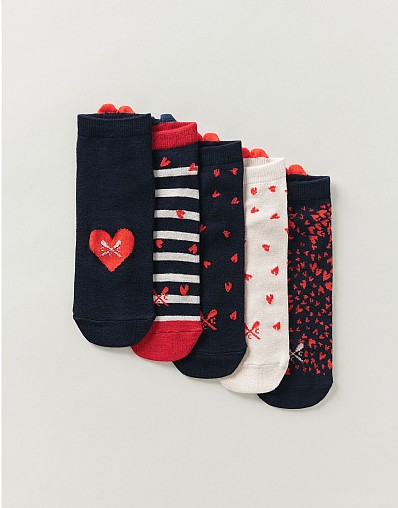 A five pack of trainer socks in red and black, all with different heart designs. There are plenty of patterns here for whatever takes your fancy. The bamboo blend is known for its supersoft, extra breathable and naturally antibacterial qualities that help to keep feet fresh.