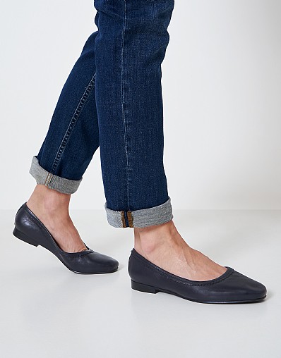 Our Daisy leather ballerina pump in navy. Pretty and refined, these are crafted from leather with a scalloped trim for a feminine finish. They’re made for all-day comfort and will go with everything. Team with floaty dresses or tailored trousers and a blouse.