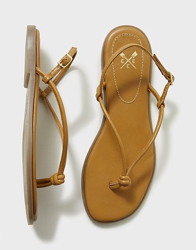 Our knot sandals in tan. Cut from leather and designed with a cushioned sole, these flat sandals are a refined summer staple. They'll pair well with denim shorts and dresses alike. Add to your shoe collection now.